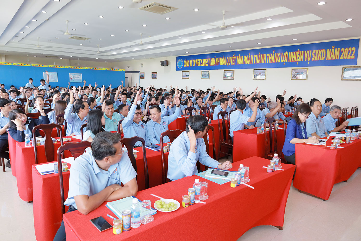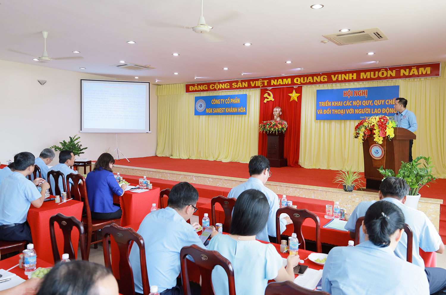 Ngày 25.8.2022, Công ty CP NGK Sanest Khánh Hòa đã tổ chức Hội nghị Triển khai các Nội quy, Quy chế và Đối thoại với Người lao động. Hội nghị có sự tham dự của Hội đồng quản trị, Ban Tổng Giám đốc, Ban Kiểm soát và 500 người lao động đại diện tham dự.