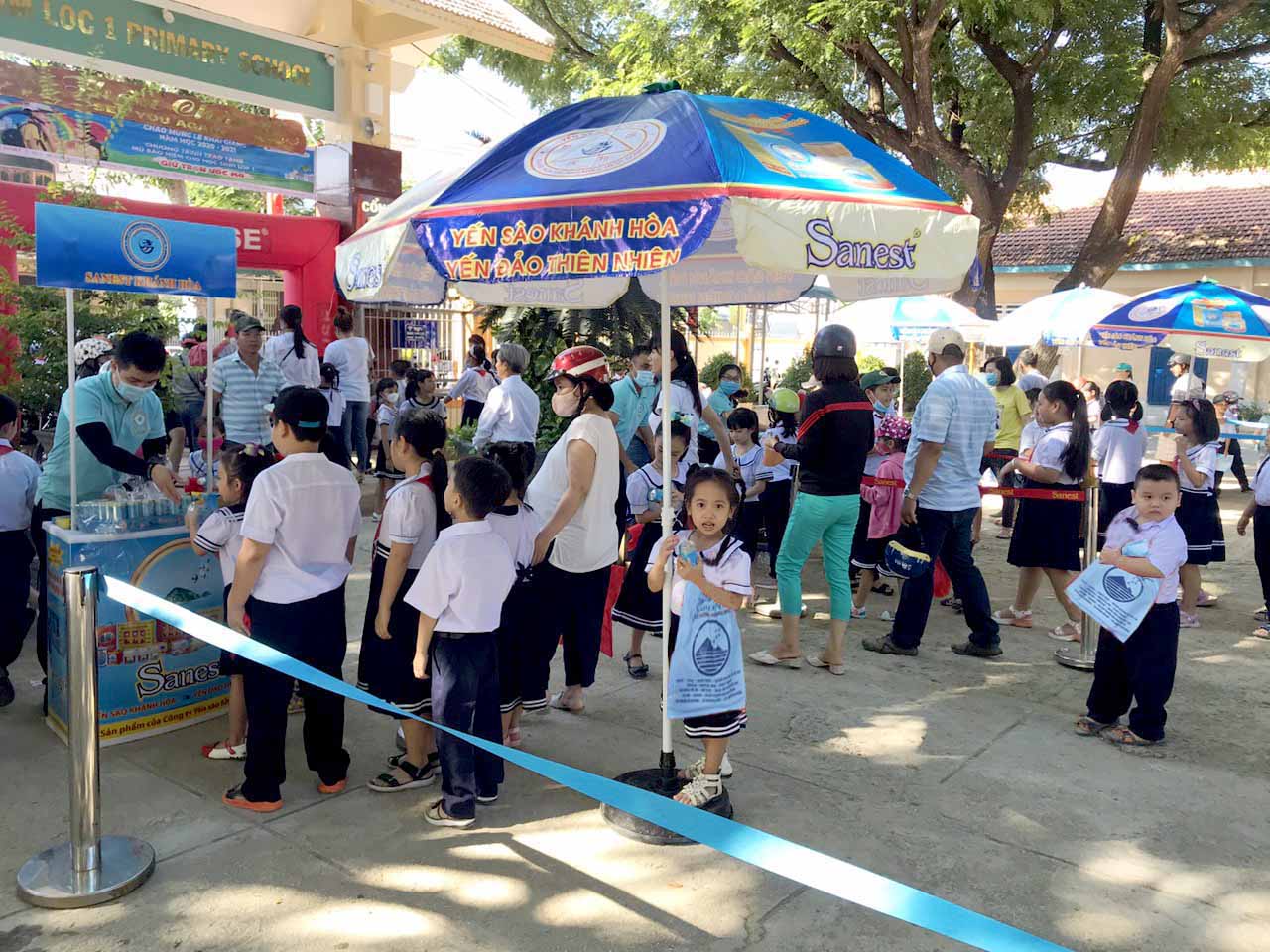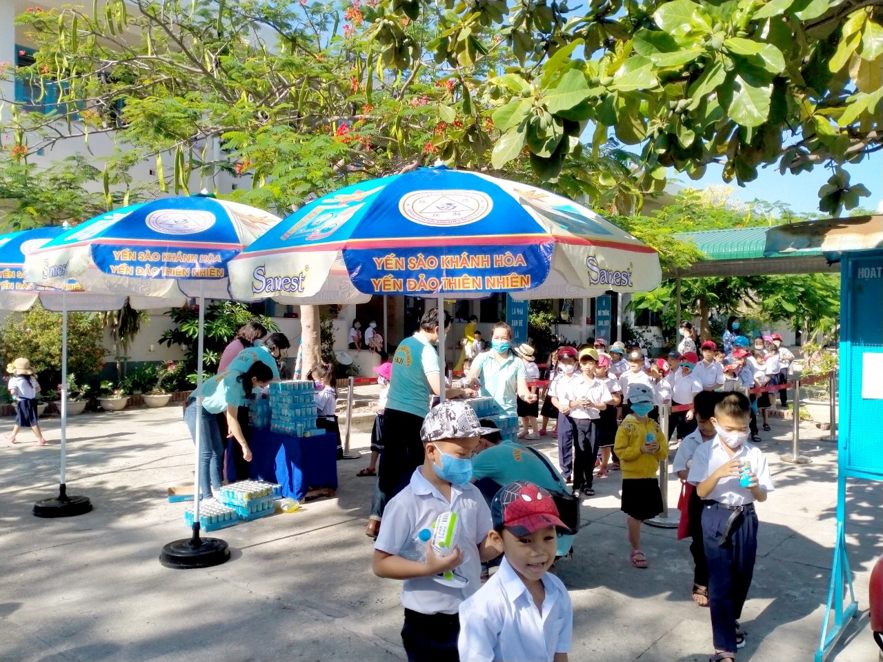 Nhân dịp này, Công ty giới thiệu sản phẩm mới – nước Yến sào Khánh Hòa Sanest dành cho trẻ em đóng lon đến với các em học sinh. Sản phẩm là sự kết hợp hài hòa giữa Yến sào, Taurine và HMO (2’-FL) hỗ trợ sự tăng trưởng, nâng cao sức đề kháng, phát triển thị giác, trí não, giúp tăng cường hệ miễn dịch và hệ tiêu hóa khỏe mạnh.