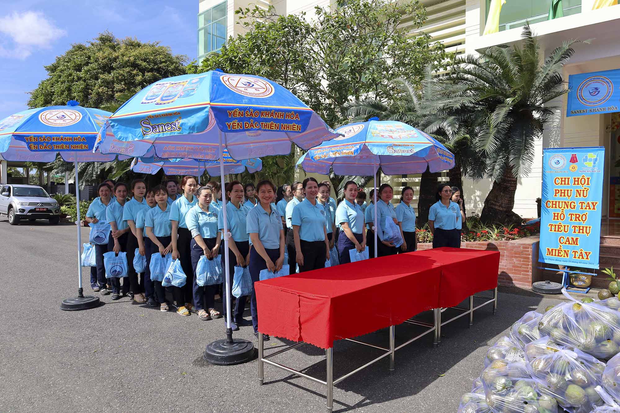 Toàn bộ số tiền mua cam đã được Công ty thanh toán và số cam này sẽ được chuyển đến tay từng nhân viên trong toàn Công ty. Qua chương trình này Sanest Khánh Hoà đã thể hiện tinh thần cùng hướng về cộng đồng chung tay vì nhân dân miền Tây, đồng thời cũng thể hiện sự quan tâm, chăm lo của Ban lãnh đạo Công ty đối với cán bộ, nhân viên, hội viên phụ nữ trong toàn Công ty.