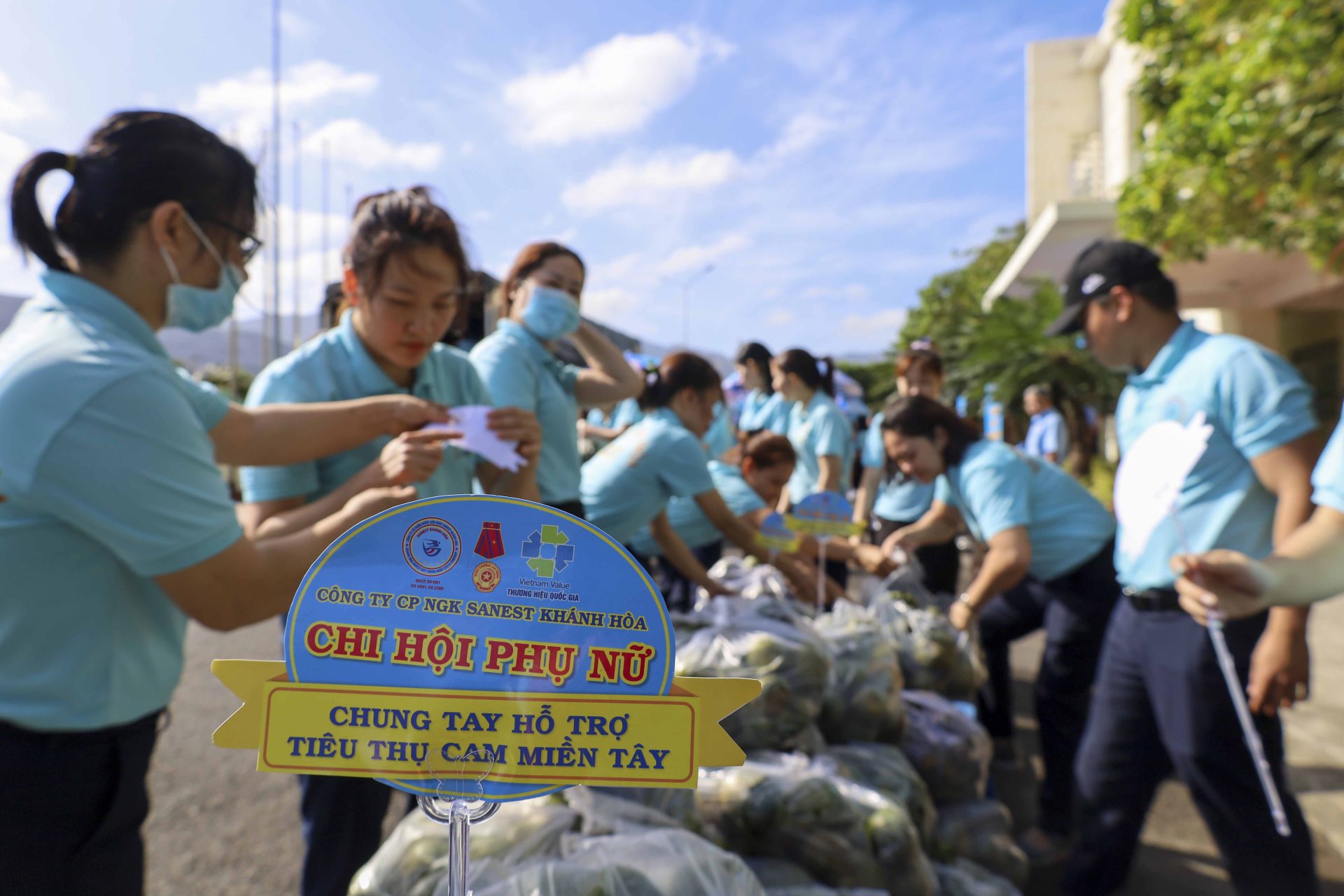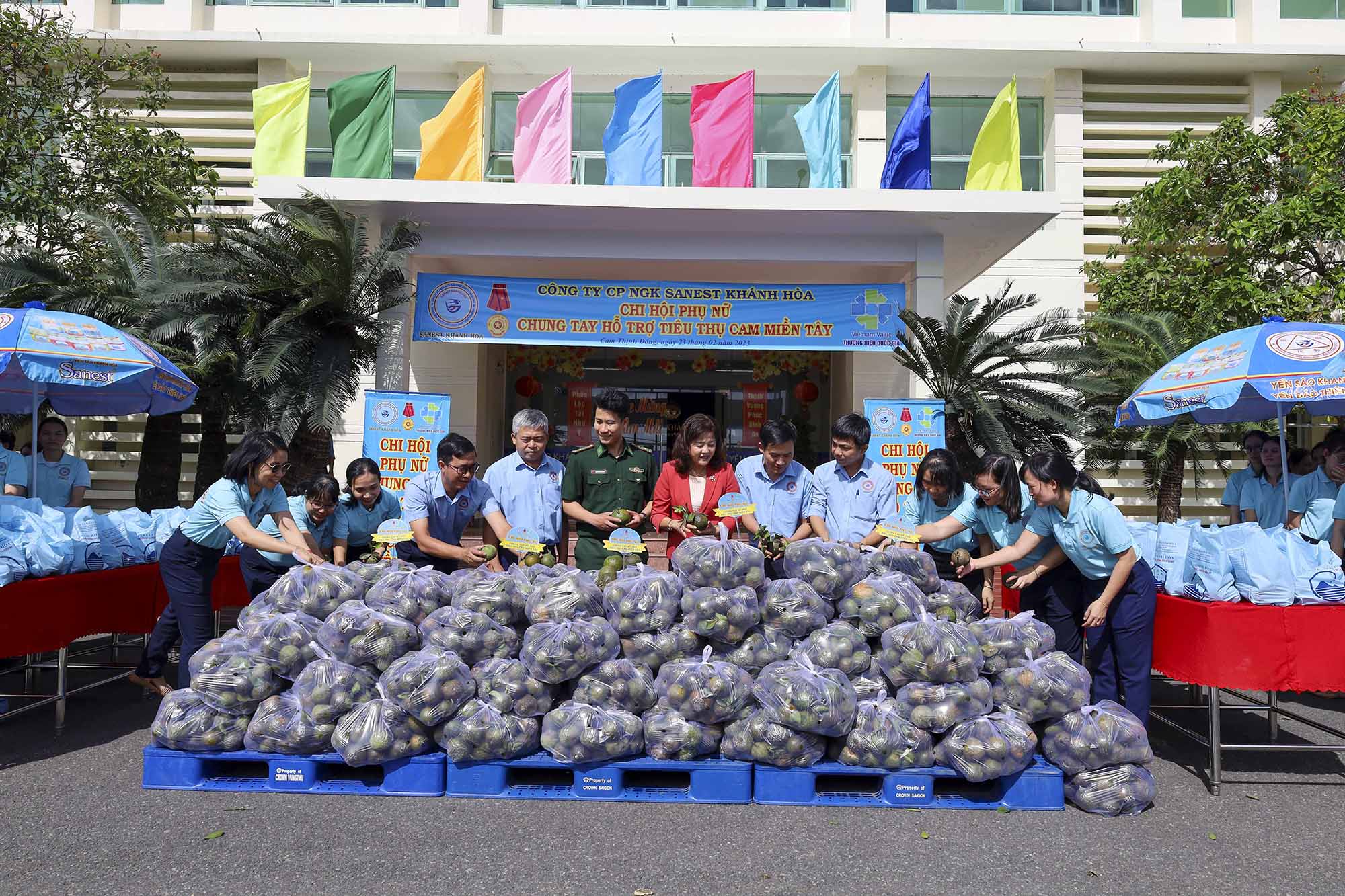 Ngay khi nhận được thông tin của Hội phụ nữ BĐBP tỉnh Khánh Hoà chia sẻ về việc giải cứu cam cho bà con nông dân miền Tây, Ban Lãnh đạo Công ty Sanest Khánh Hòa đã chỉ đạo Hội phụ nữ cùng cán bộ, nhân viên tích cực hưởng ứng chung tay hỗ trợ tiêu thụ cam miền Tây với số lượng đợt 1 là 4 tấn.