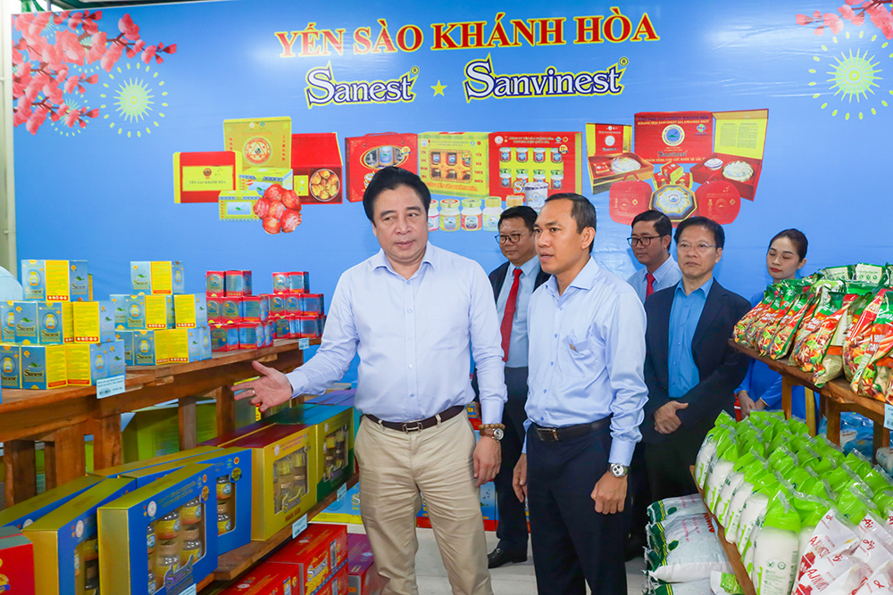 Đồng chí Nguyễn Khắc Toàn – Phó Bí thư Thường trực Tỉnh ủy, Chủ tịch HĐND tỉnh Khánh Hòa tặng quà chúc Tết Công đoàn ngành Công thương, Công ty Yến sào Khánh Hòa, Tổng Công ty Khánh Việt