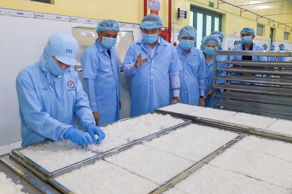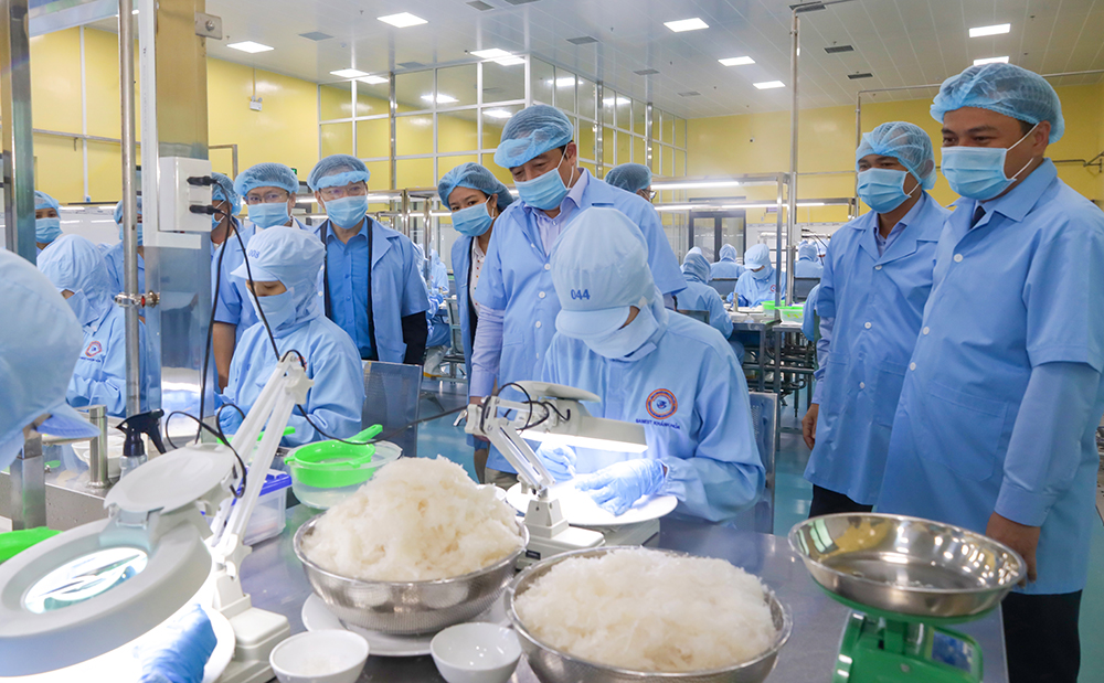 Các đồng chí lãnh đạo tham quan Xưởng sản xuất Đặc sản Yến sào thiên nhiên tinh chế