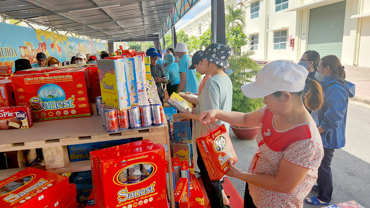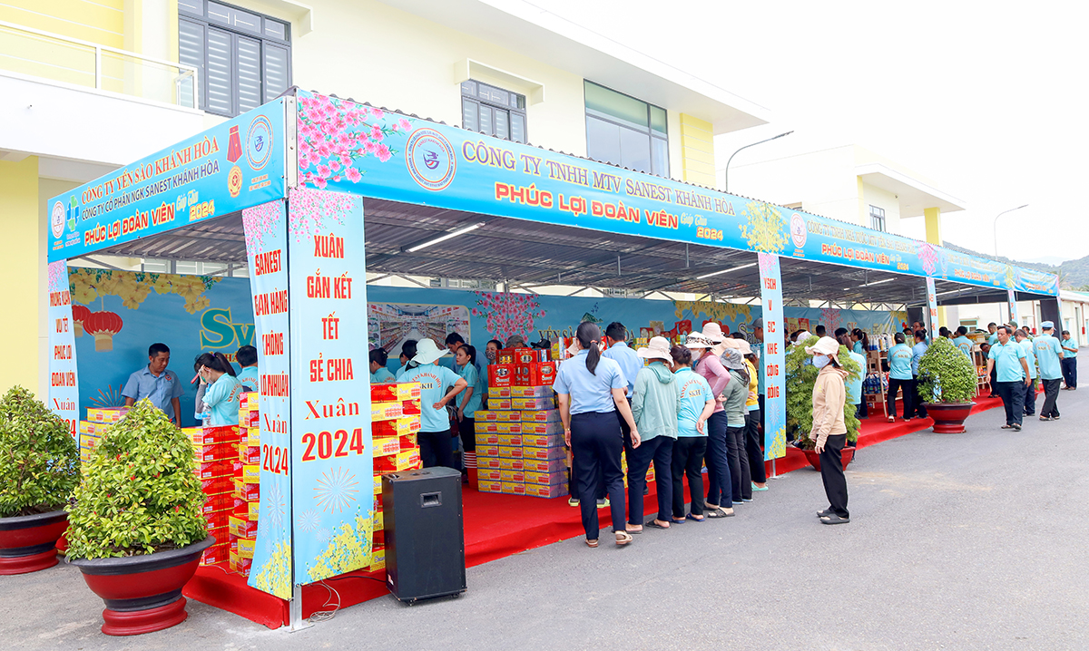 Được sự đồng ý của Ban lãnh đạo Công ty Yến sào Khánh Hòa và Công ty CP NGK Sanest Khánh Hòa, Công đoàn cơ sở Công ty Yến sào Khánh Hòa cùng Công đoàn Bộ phận Công ty Sanest Khánh Hòa đã tổ chức chương trình “Phúc lợi đoàn viên” và xây dựng “Gian hàng không lợi nhuận” từ ngày 16 đến ngày 31/01/2024, với mục đích chia sẻ, hỗ trợ trong việc mua sắm Tết cho người lao động trong Công ty, các đơn vị trực thuộc Yến sào Khánh Hòa và bà con nhân dân tại khu vực Cam Thịnh có hoàn cảnh khó khăn với tổng kinh phí 1,5 tỷ đồng.