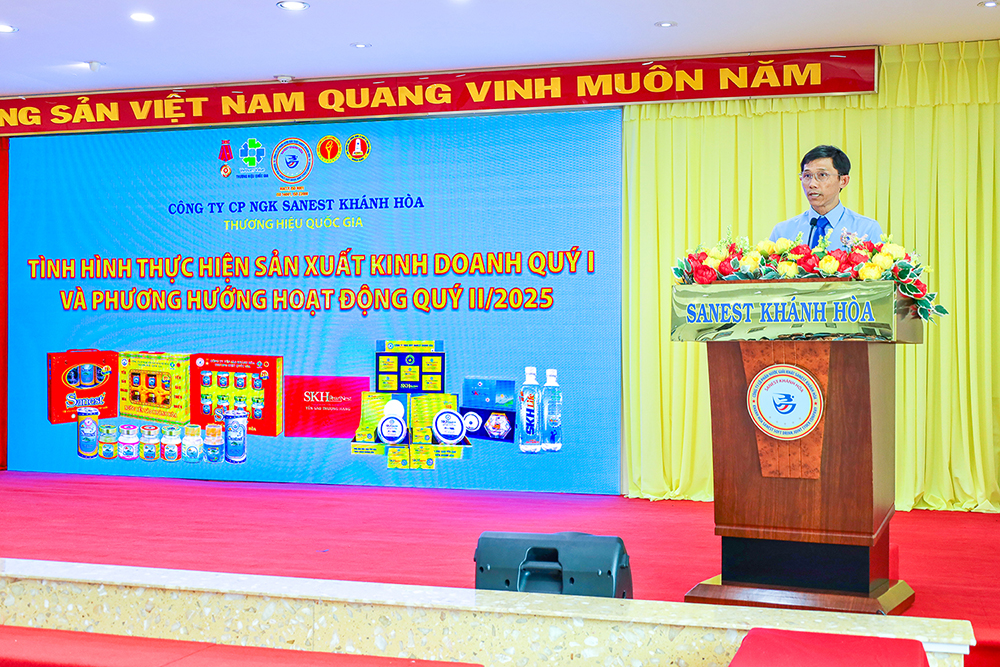 Phát biểu tại Hội nghị, đồng chí Nguyễn Thanh Hải – Phó Bí thư Đảng ủy, Thành viên HĐTV, Tổng Giám đốc Công ty Yến sào Khánh Hòa đã biểu dương nỗ lực về những kết quả đã đạt được: Doanh thu đạt 377,54 tỷ đồng, tăng 21,4% so với cùng kỳ năm 2024; lợi nhuận đạt 21,47 tỷ đồng, tăng 11,5% so với cùng kỳ năm 2024, đồng thời đánh giá cao tất cả các hoạt động về sản xuất, kinh doanh, chiến lược đổi mới, kiểm soát thị trường về vấn đề hàng giả, hàng nhái. Trong quý II/2025, đồng chí nhấn mạnh SKH cần tiếp tục quản lý hệ thống chất lượng có hiệu quả, an toàn lao động, phối hợp các đơn vị trong hệ thống để nâng cao chất lượng sản phẩm phục vụ người tiêu dùng, đẩy mạnh công tác bán hàng, quyết liệt thực hiện các nhiệm vụ trọng tâm phát triển Thương hiệu Quốc gia, tối ưu hóa chi phí, tích cực trong chuyển đổi số, ứng dụng AI, xây dựng chỉ tiêu KPI để đánh giá hiệu quả và nâng cao năng suất công việc, phát triển ra đời các dòng sản phẩm mới, xây dựng bảo tàng Yến sào Khánh Hòa. Thành kính hướng về Lễ hội Yến sào Khánh Hòa (10/5AL), thi đua tăng trưởng hai con số, nêu cao tinh thần đoàn kết, phối hợp chặt chẽ toàn hệ thống thực hiện thành công chương trình tri ân khách hàng “Yến sào Khánh Hòa, Sanest, Sanvinest niềm tự hào Thương hiệu Quốc gia”. Tiếp tục rà soát, tinh giảm lao động theo đúng lộ trình và đảm bảo chi trả đầy đủ các chế độ hỗ trợ cho NLĐ theo đúng quy định. Các chế độ, chính sách đãi ngộ tiếp tục được thực hiện đầy đủ, tạo môi trường làm việc ổn định và chăm lo tốt đời sống người lao động.