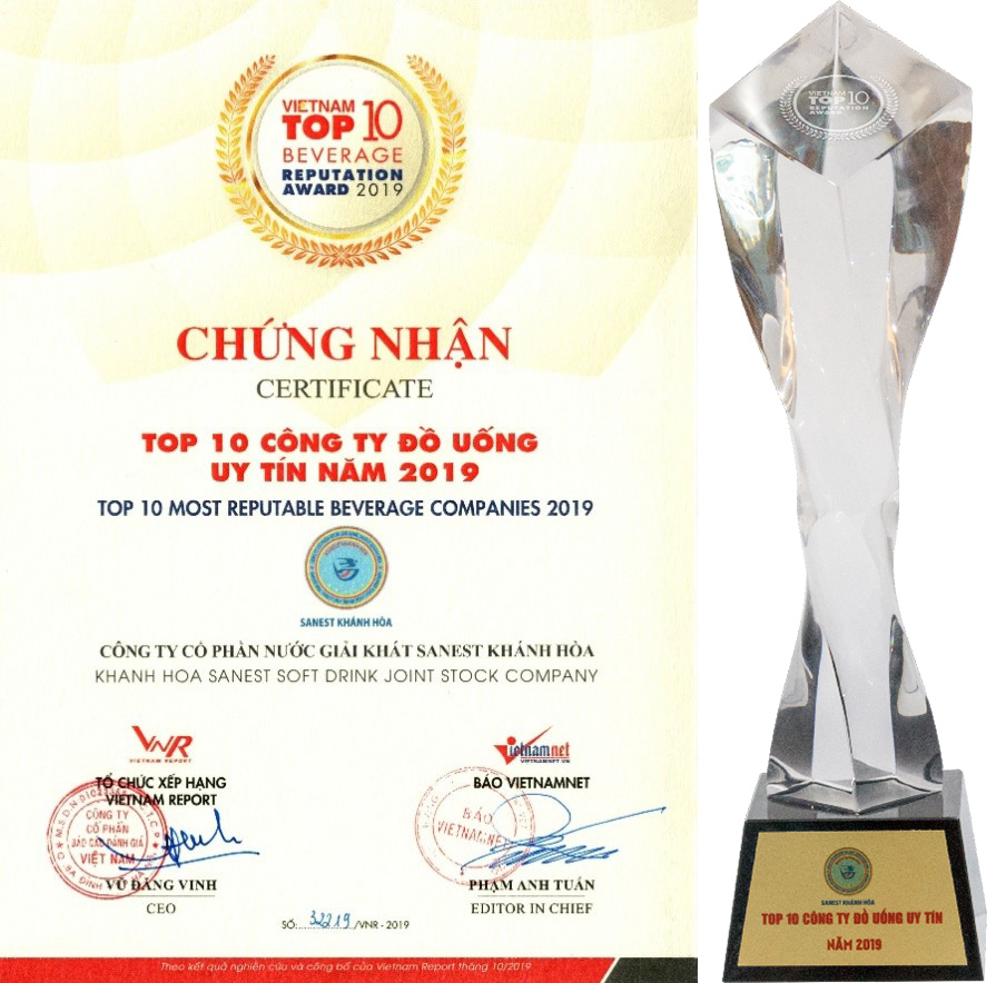 Sanest Khánh Hòa được vinh danh Top 10 Công ty Đồ uống uy tín năm 2019 đã khẳng định hiệu quả hoạt động, tiềm lực tài chính và đóng góp tích cực của Công ty CP NGK Sanest Khánh Hòa vào sự phát triển chung ngành thực phẩm – đồ uống Việt Nam. Đó là thành quả nỗ lực phấn đấu của tập thể lãnh đạo, CB CNLĐ Công ty trong sản xuất kinh doanh, xây dựng và định vị thương hiệu Sanest Khánh Hòa trong lòng người tiêu dùng Việt Nam, tạo nền tảng vững chắc cho Sanest Khánh Hòa vươn cao toàn thế giới.