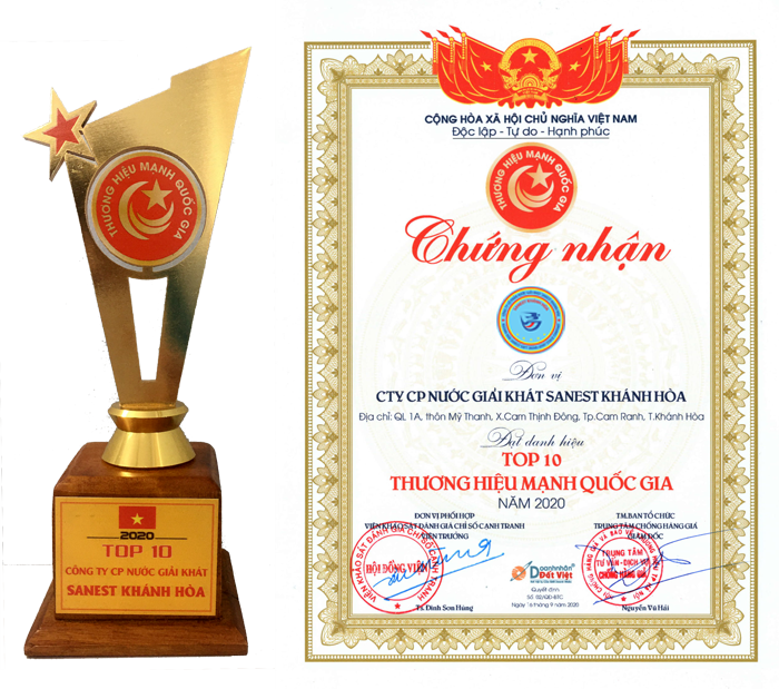 Trong sự kiện này, Công ty được vinh danh “Top 10 Thương hiệu mạnh Quốc gia 2020” vượt qua các tiêu chí đánh giá khắt khe từ các chuyên gia kinh tế hàng đầu: Bảo vệ thương hiệu, kết quả kinh doanh vượt trội, chất lượng sản phẩm, tính bền vững và ổn định của doanh nghiệp, thương hiệu Sanest Khánh Hòa tiếp tục khẳng định vị thế vững chắc trong lòng người tiêu dùng, chiếm lĩnh thị trường trong nước và vươn cao thị trường năm châu.