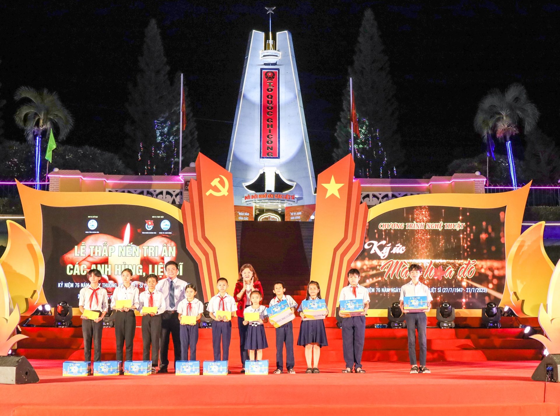 Đ/c Lữ Thanh Hải – UV BTV Tỉnh ủy, Bí thư Thành ủy Cam Ranh, Đ/c Lê Thị Hồng Vân – Tổng Giám đốc Công ty Sanest Khánh Hòa tặng quà các em nhỏ gia đình chính sách TP Cam Ranh.