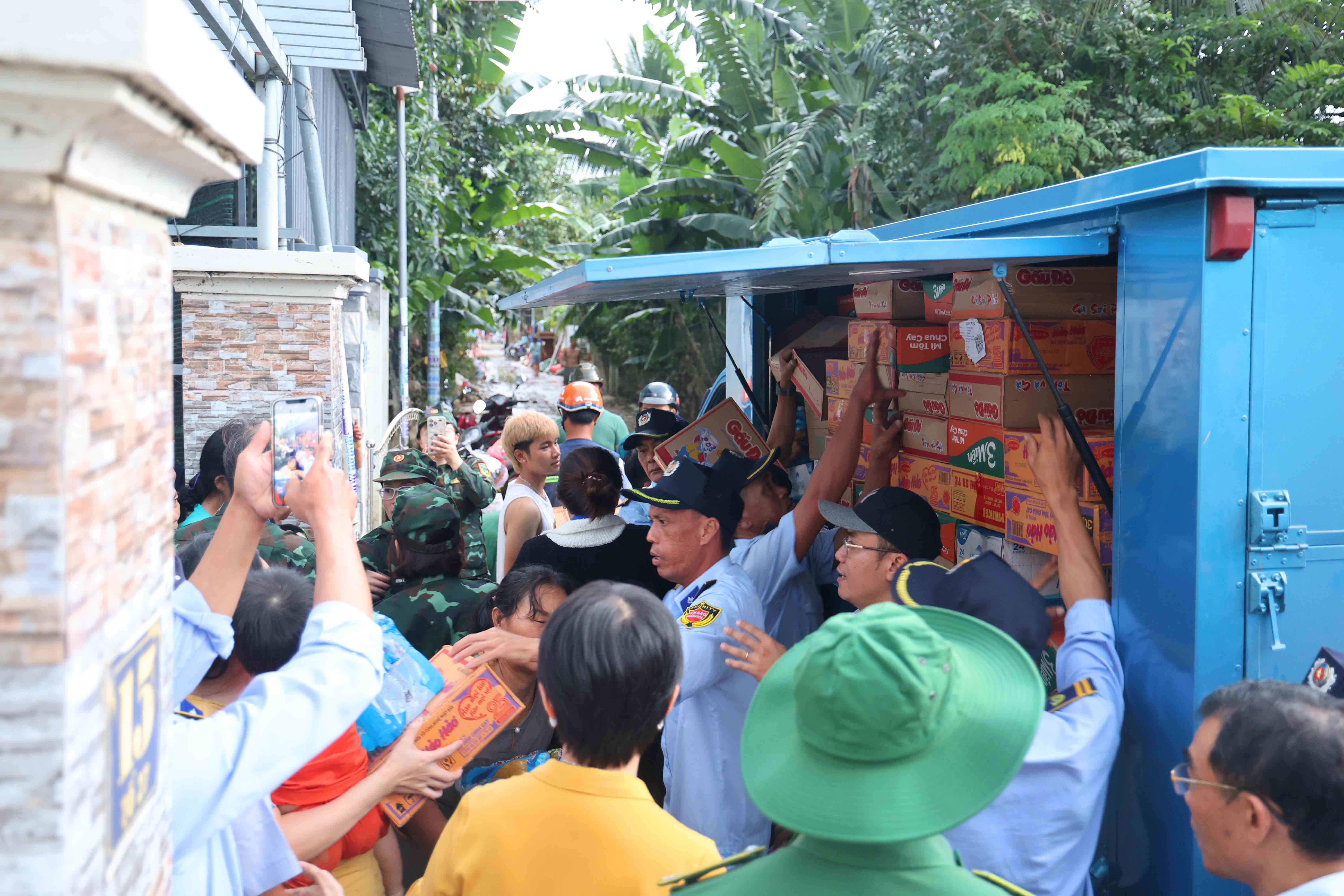 Từ tinh thần “lá lành đùm lá rách”, các đơn vị đã khẩn trương kết nối, đưa 15 tấn hàng hóa thiết yếu (gồm quần áo, chăn màn, nước uống, mì tôm và một số nhu yếu phẩm phục vụ sinh hoạt hằng ngày) đến các Bệnh viện và người dân, đặc biệt ưu tiên các hộ gia đình có hoàn cảnh khó khăn, người già neo đơn và các hộ bị thiệt hại nặng do mưa lũ.