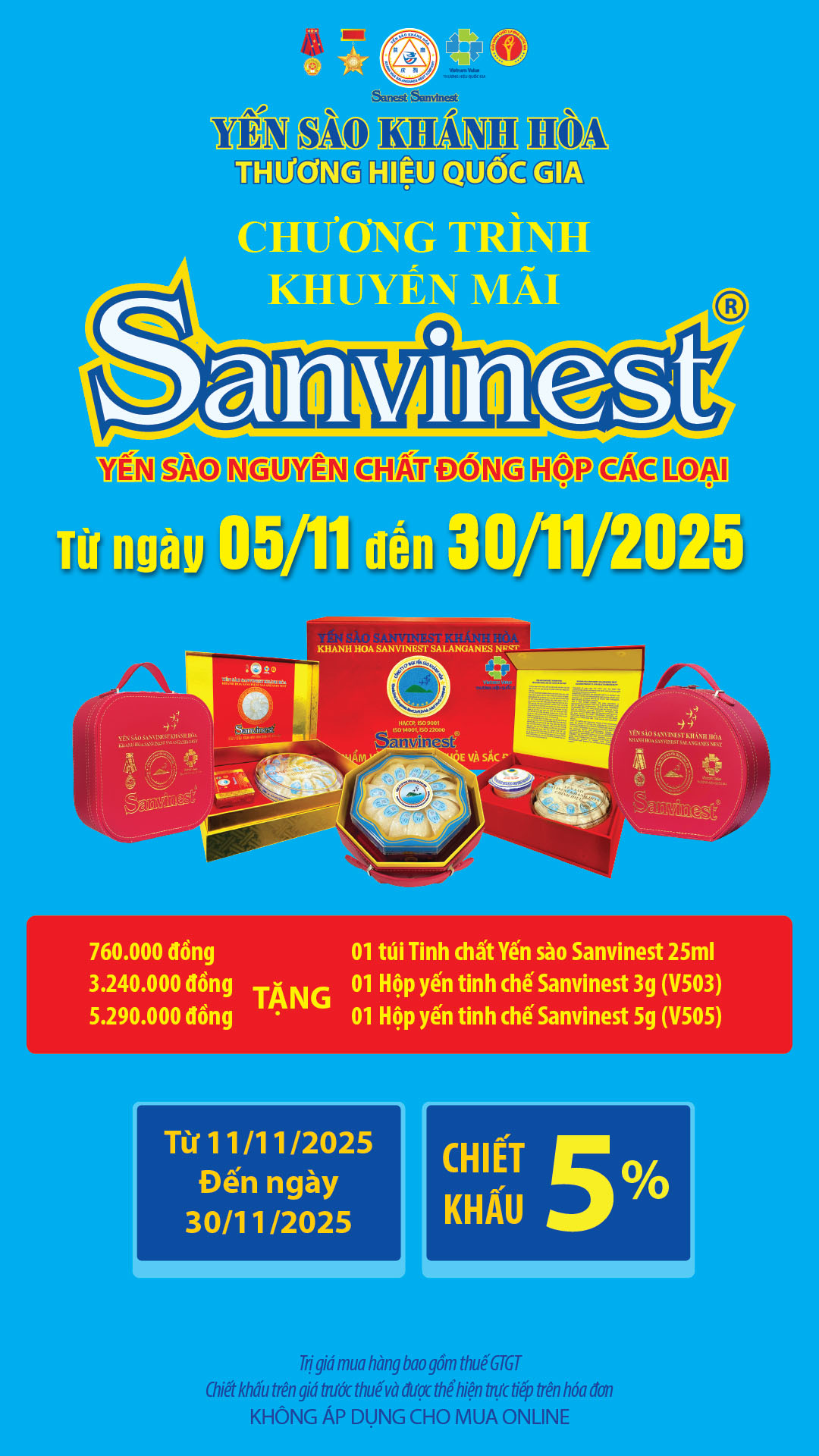 Chương trình khuyến mãi sản phẩm Yến sào đảo thiên nhiên tinh chế và tinh chất yến sào áp dụng tại hệ thống Cửa hàng GTSP trực thuộc Công ty từ ngày 05/11/2025 đến hết ngày 30/11/2025 12/11/2025 KHUYẾN MÃI