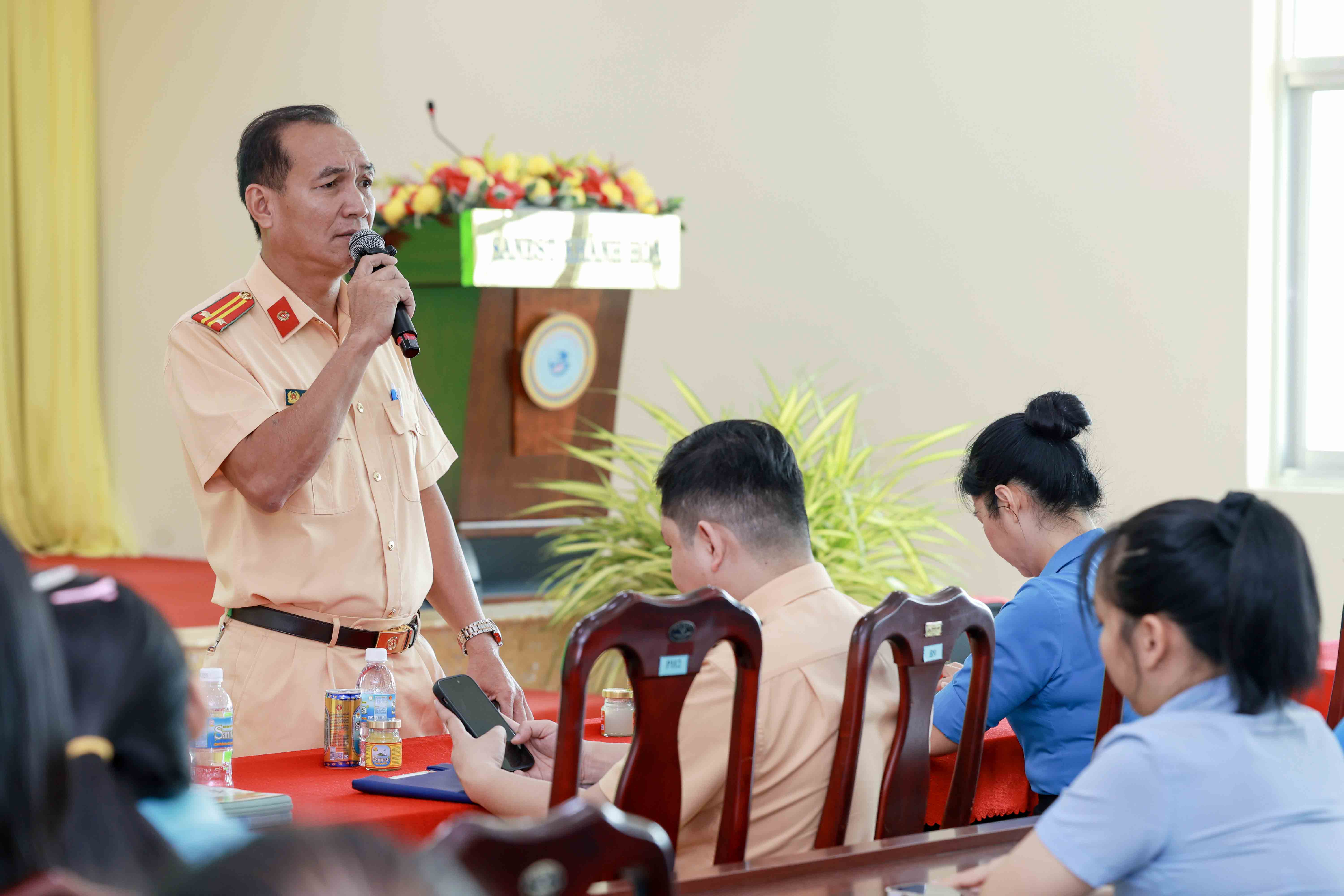 Tại buổi tập huấn, cán bộ Phòng CSGT đã truyền đạt nhiều kiến thức về các quy định của pháp luật khi tham gia giao thông, kỹ năng lái xe an toàn, cách phòng tránh tai nạn và nhận diện các hành vi vi phạm phổ biến. NLĐ được trực tiếp giao lưu, tham gia trả lời các câu hỏi và trao đổi tình huống thực tế.