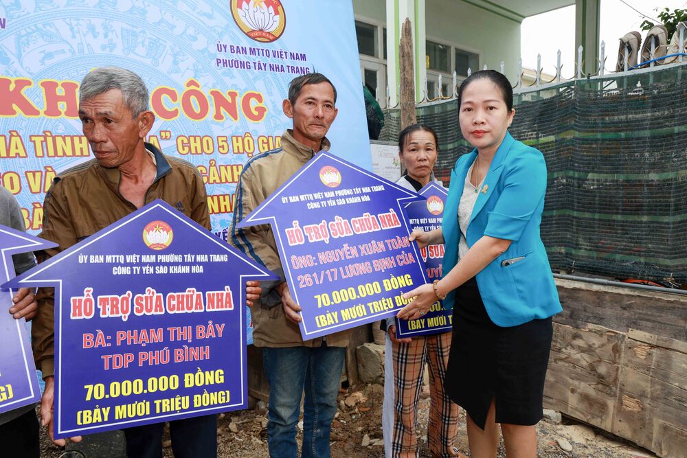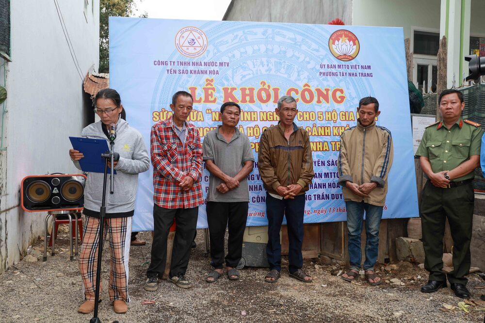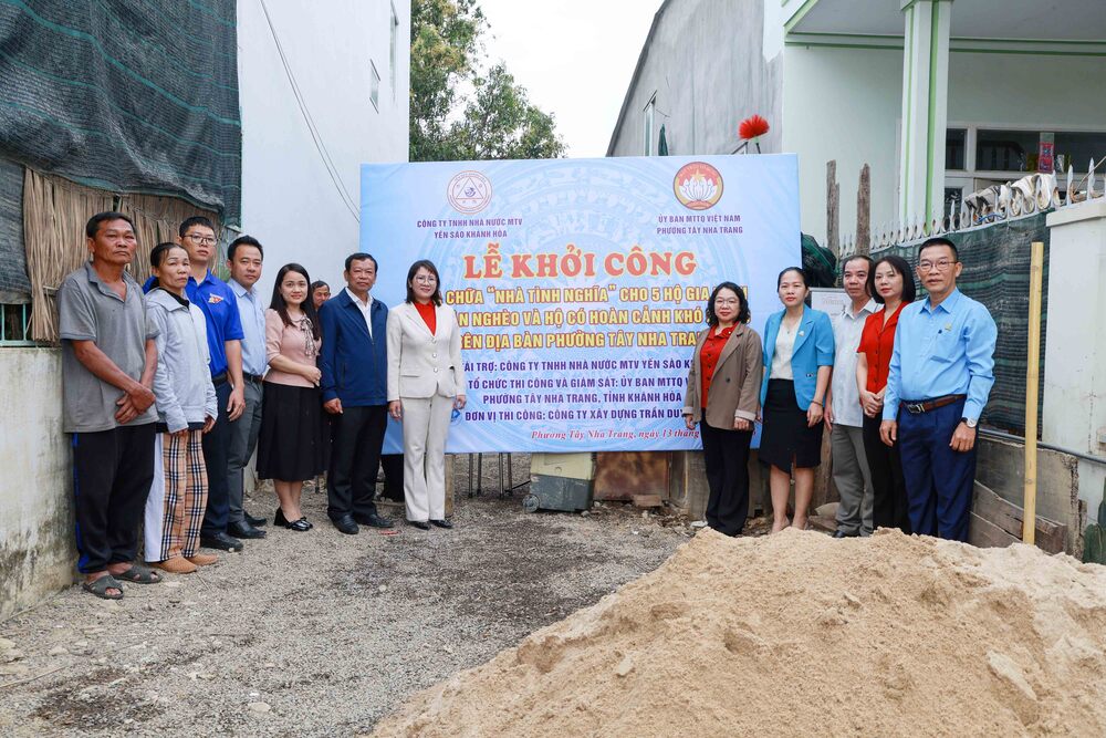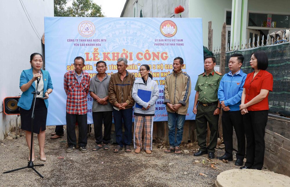 Ngày 13/1, tiếp nối hành trình sẻ chia vì cộng đồng, Công ty Yến sào Khánh Hòa phối hợp với Uỷ ban MTTQ Việt Nam phường Tây Nha Trang tổ chức Lễ khởi công sửa chữa Nhà tình nghĩa cho 5 hộ gia đình trên địa bàn.