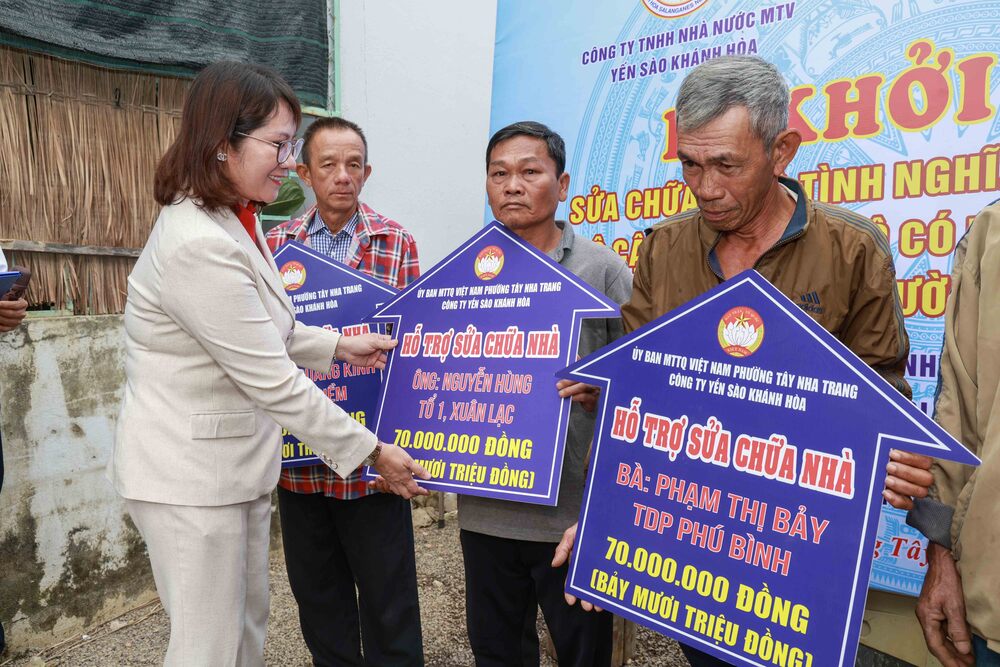 Các hộ gia đình thuộc diện cận nghèo đời sống còn nhiều vất vả và đang gặp khó khăn cấp thiết về nhà ở, Công ty Yến sào Khánh Hòa đã kịp thời hỗ trợ kinh phí 70 triệu đồng/căn nhà, đồng hành cùng địa phương xóa nhà tạm, nhà dột nát.