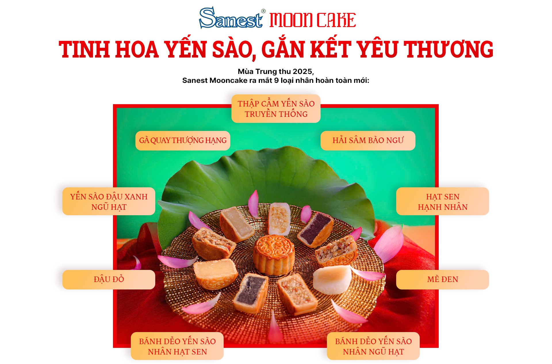 Với diện mạo mới và hương vị nâng tầm, Sanest Mooncake 2025 tiếp tục đồng hành cùng hàng triệu gia đình Việt, viết tiếp câu chuyện ký ức ngọt ngào của Tết Trung thu. Bởi trao nhau hộp bánh Sanest Mooncake không chỉ là trao món quà ẩm thực, mà còn là trao đi tình thân, ký ức và niềm hạnh phúc trọn vẹn – để đêm rằm tháng Tám mãi là ký ức đoàn viên trong lòng mỗi người Việt.