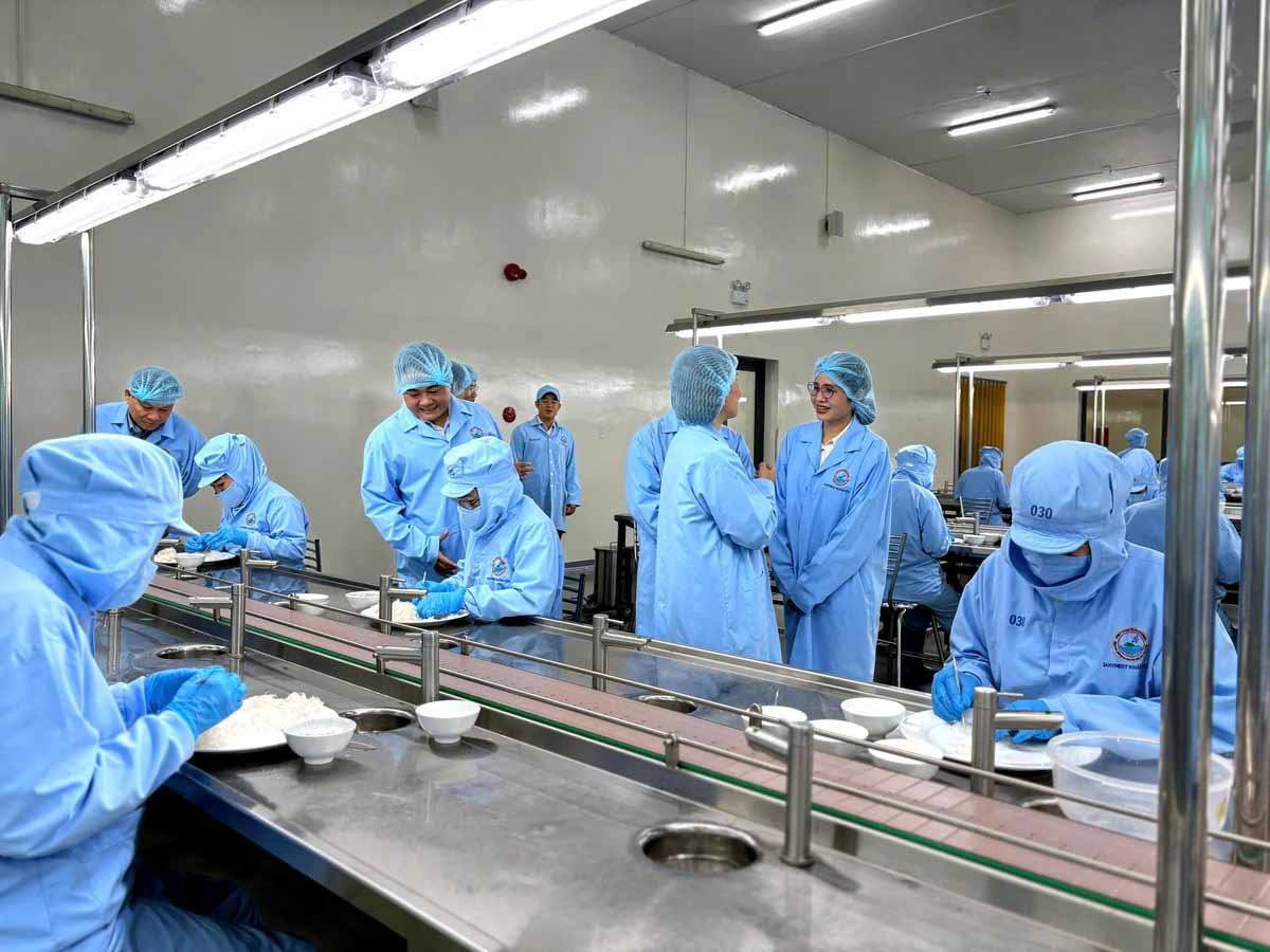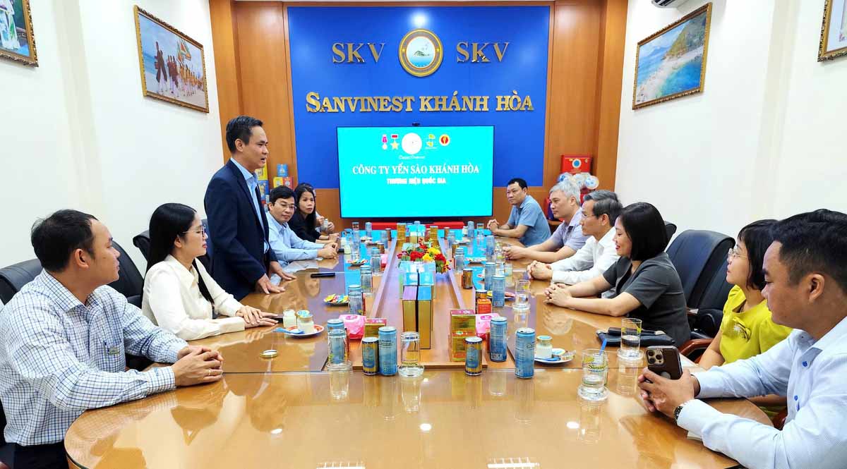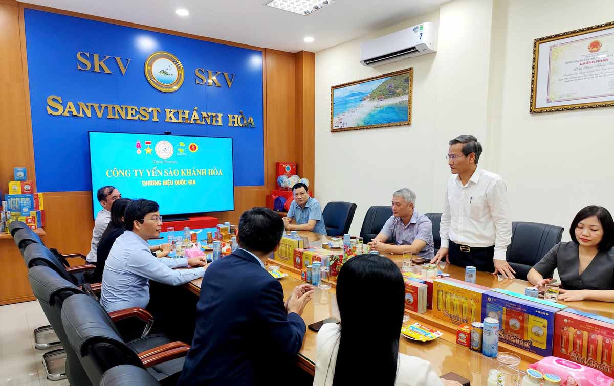 Tại đây, đồng chí Nguyễn Thanh Hải, Tổng Giám đốc Công ty Yến sào Khánh Hòa, và đồng chí Phan Thị Giang, Tổng Giám đốc Công ty CP NGK Yến sào Khánh Hòa đã giới thiệu khái quát lịch sử ngành nghề, và quy trình sản xuất hiện đại theo tiêu chuẩn quốc tế. Đoàn còn tham quan showroom trưng bày đa dạng các dòng sản phẩm yến sào cao cấp mang thương hiệu Yến sào Khánh Hòa Sanest Sanvinest.