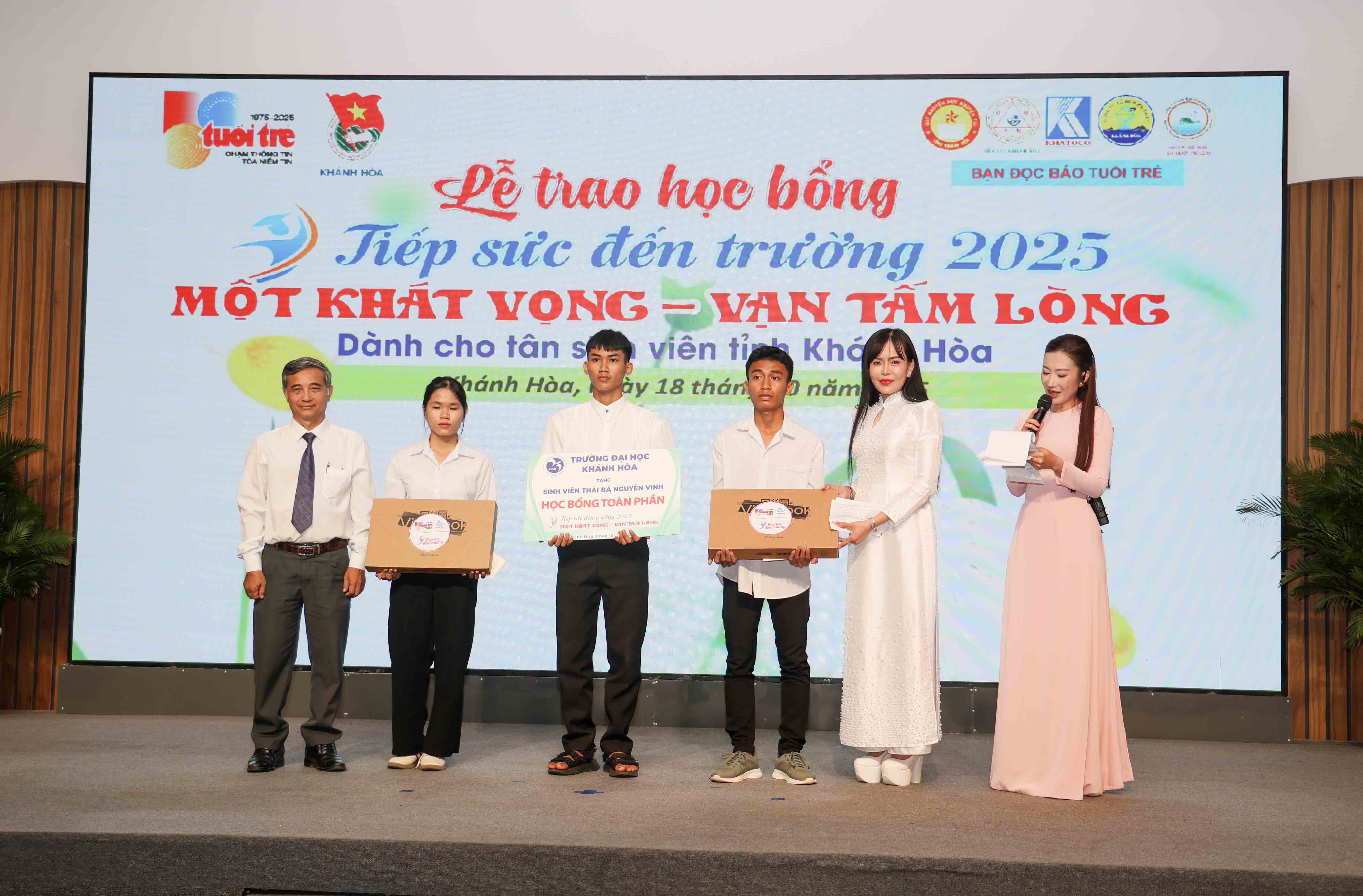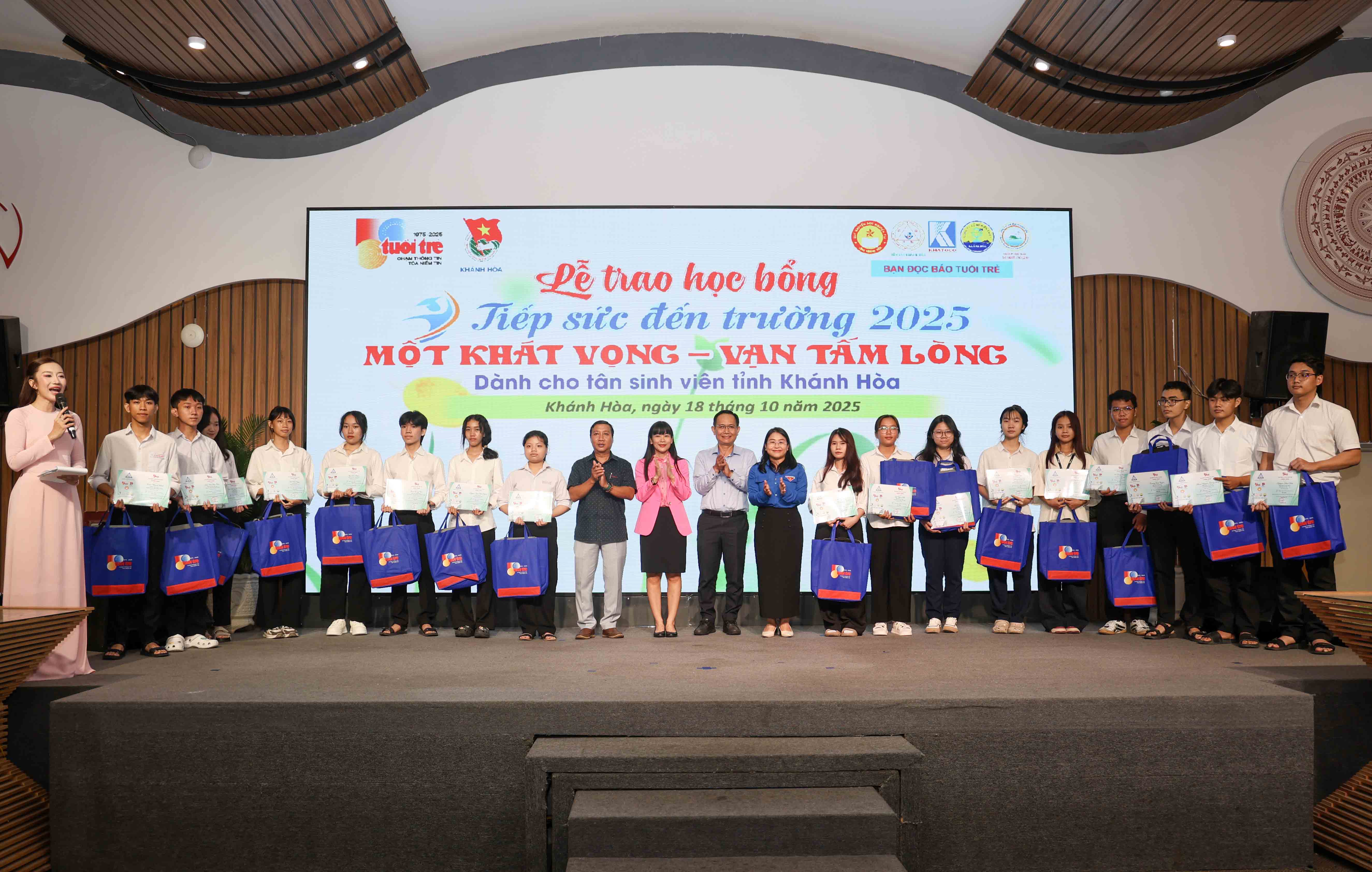 Chiều 18/10/2025, tại Trung tâm Hội nghị Âu Lạc Thịnh (Khánh Hoà), chương trình “Tiếp sức đến trường 2025 – Một khát vọng, vạn tấm lòng” do Báo Tuổi Trẻ phối hợp cùng Tỉnh đoàn Khánh Hòa tổ chức đã diễn ra trang trọng và ấm áp.
