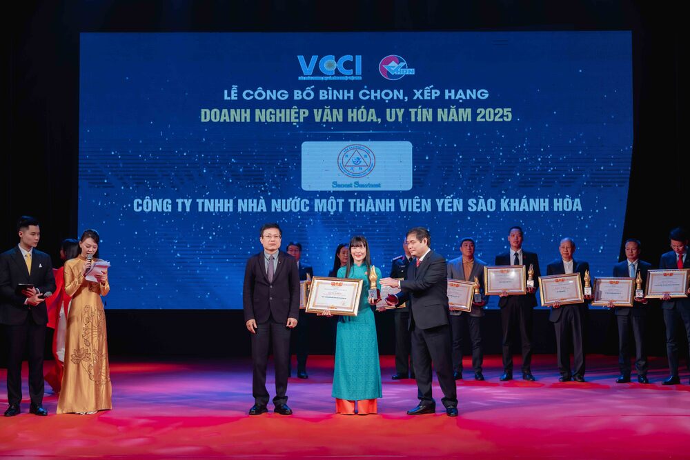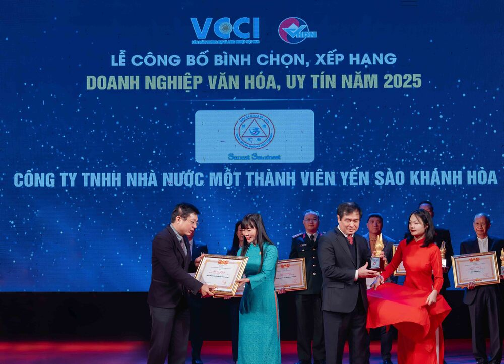 Ngày 10/1, tại Hà Nội, Công ty Yến sào Khánh Hòa đã xuất sắc được vinh danh “Top 20 Doanh nghiệp văn hóa, uy tín năm 2025”. Giải thưởng do Liên đoàn Thương mại và Công nghiệp Việt Nam (VCCI) tổ chức.
