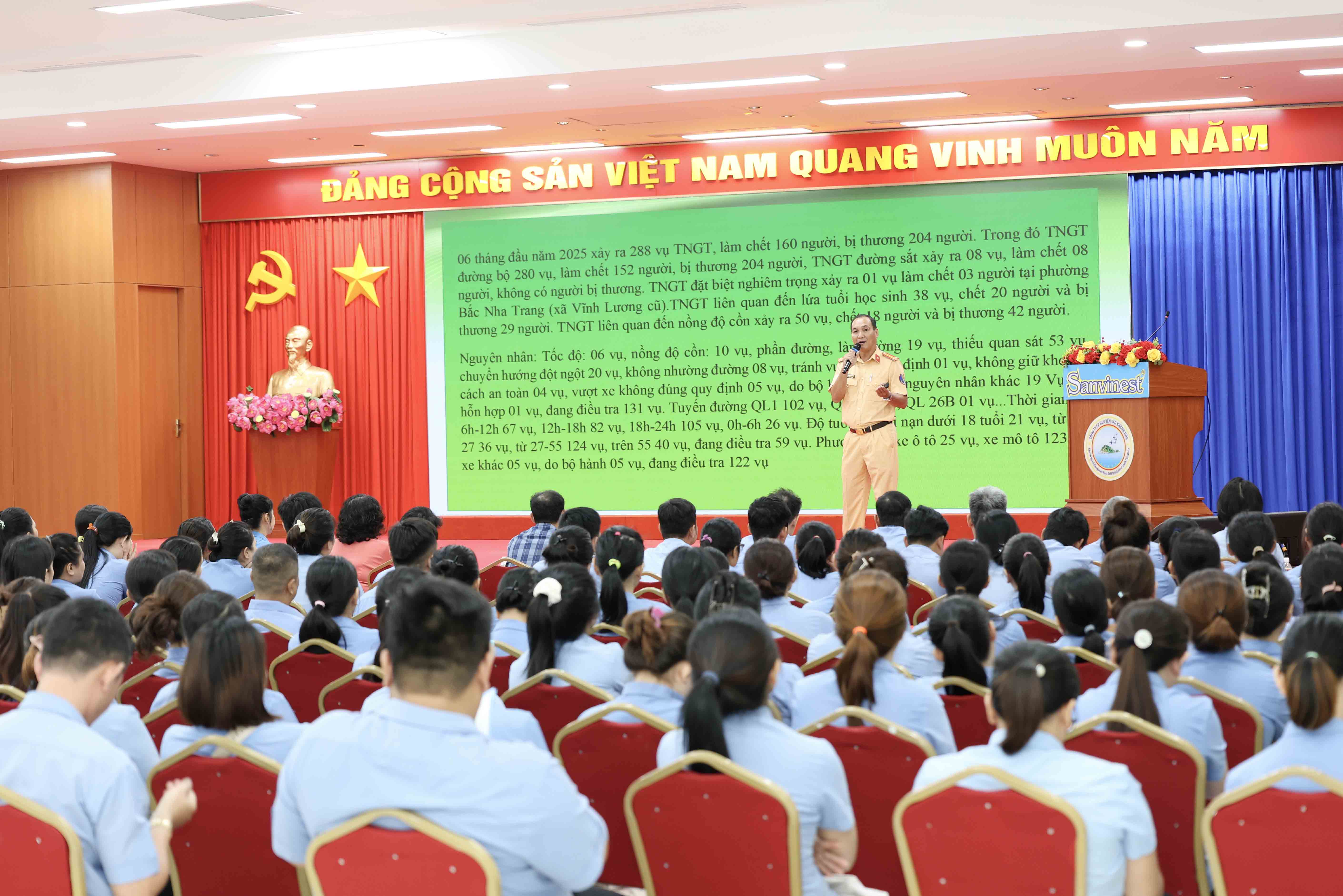 Nhằm nâng cao nhận thức, ý thức chấp hành luật ATGT trong đoàn viên và CBCNLĐ, góp phần xây dựng văn hóa giao thông, ngăn chặn, hạn chế tình trạng vi phạm pháp luật và các vụ tai nạn giao thông liên quan đến CBCNLĐ. Công đoàn cơ sở Công ty Yến sào Khánh Hòa phối hợp với Phòng CSTG Công an tỉnh tổ chức tuyên truyền, phổ biến pháp luật ATGT trong 06 tháng cuối năm 2025.